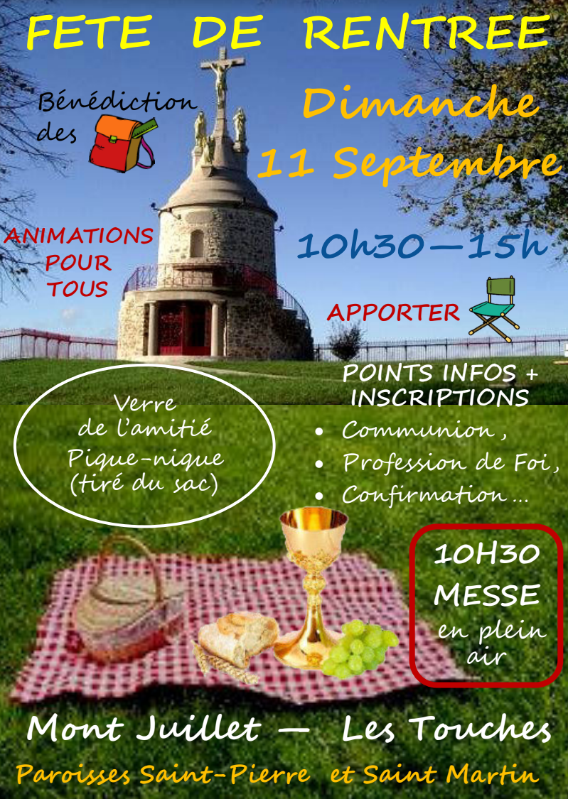 Vous êtes invités à participer à la messe de rentrée qui aura lieu ce dimanche au Mont Juillet aux Touches dès 10h30