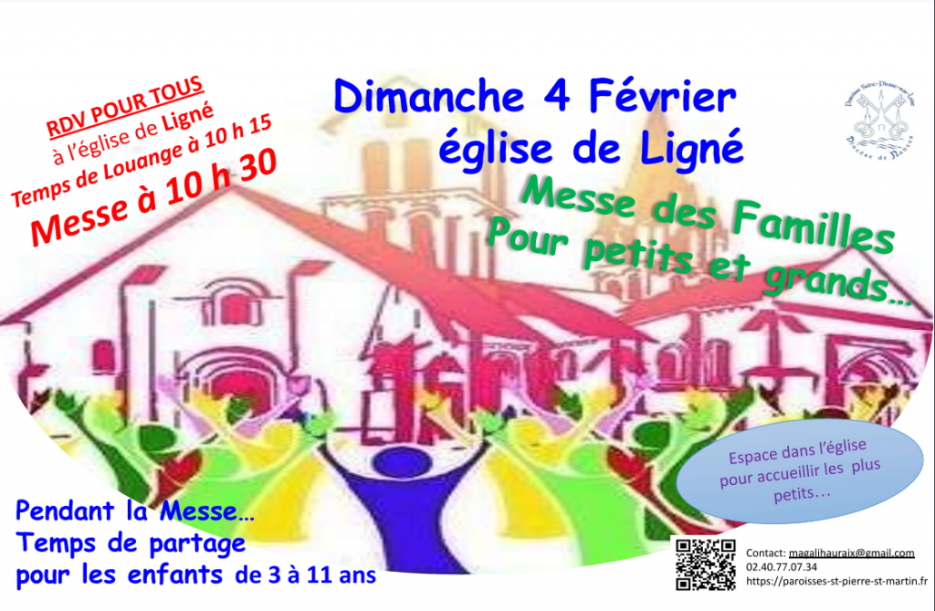 Veuillez noter que la prochaine messe des familles aura lieu le 4 février 2024 à 10h30 à l’église de Ligné.
