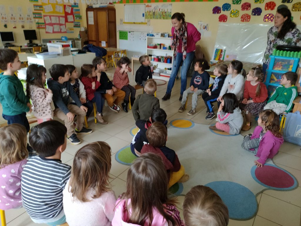 Des parents d’origine étrangère ou ayant vécu dans un autre pays sont venus dans les classes de maternelle pour faire une activité avec les élèves autour des langues.